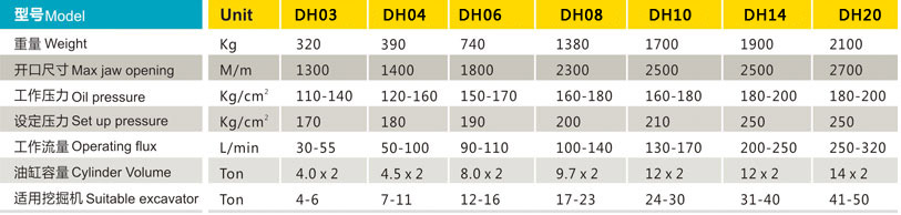 ◆ 東弘DH科系列旋轉(zhuǎn)式抓鋼器、抓石器采用特殊鋼材,質(zhì)地輕,具有高彈性,耐磨性高。